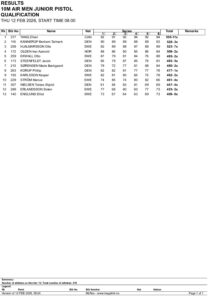 DOA 2026 Day 1 Pistol Men Junior Resultlist Qualification Prem
