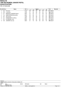 DOA 2026 Day 2 Pistol Women Junior Resultlist Qualification