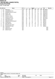 DOA 2026 Day 3 Pistol Men Junior Resultlist Qualification