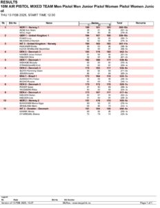 DOA 2025 Mixed Team Event Pistol Qualifying Result list
